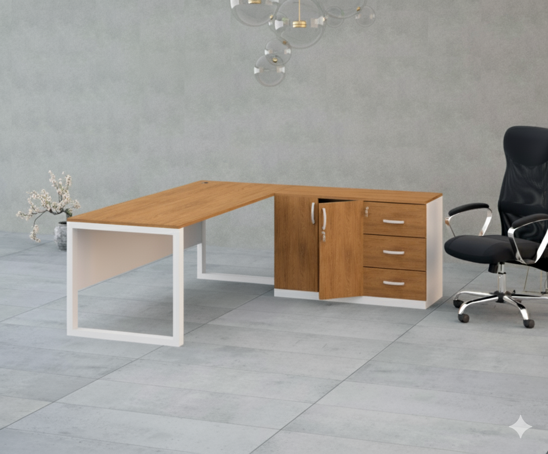 Elevate your UAE workspace with the custom-made Executive Desk AR. Crafted from premium EGGER Germany MFC MDF boards, this sophisticated desk offers generous dimensions (L220 W90 H76cm) with a practical return (L90 D45 H67.4cm). Select from 200 color options and enjoy a 5-year warranty on all EGGER boards.