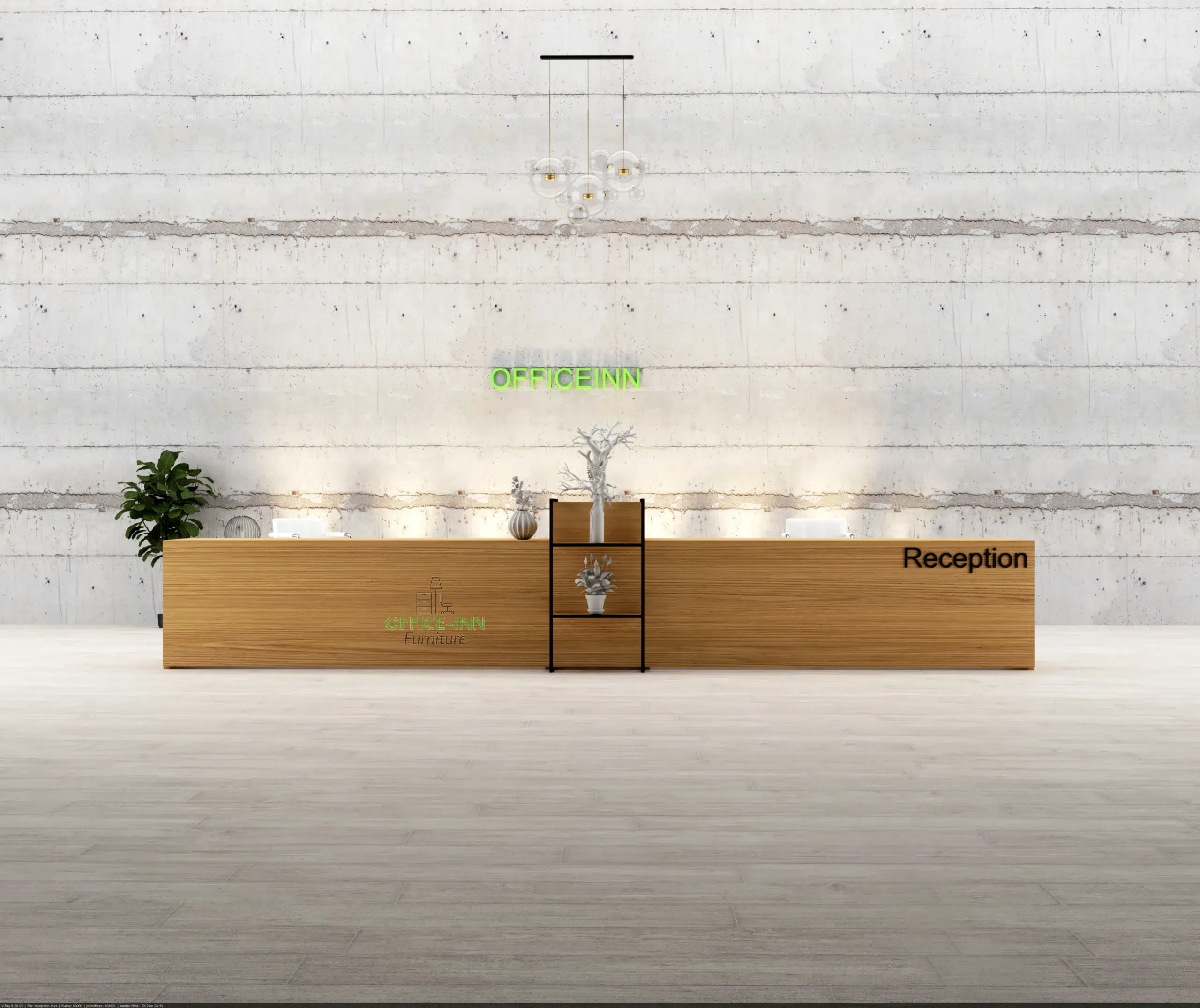 Presenting the best custom reception furniture available in the United Arab Emirates: the Aamu Reception Desk. This large oak welcome desk, painstakingly constructed from high-quality EGGER German board, blends remarkable style with exceptional practicality to create a commanding and inviting entryway for your office.